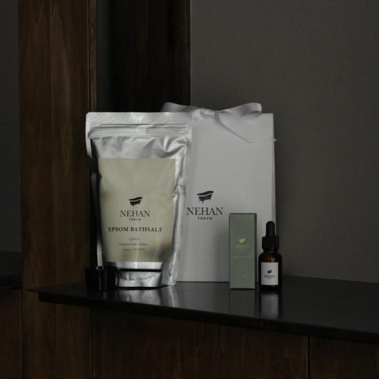純度99.99%の「エプソムソルト無香料 800g 1袋」と上質な香りを楽しみながら肌をなめらかにする浴用認可のアロマオイル入浴料「ネハン・バスアロマオイル 」をまとめたオススメのギフトセット。