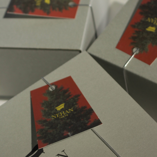 NEHANギフトBOX(グレー)M(クリスマスタグ付き)に商品をお入れし、発送用段ボールに入れて発送いたします。